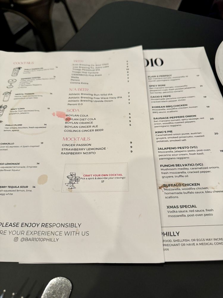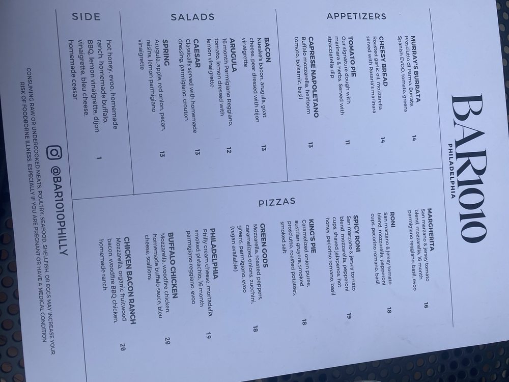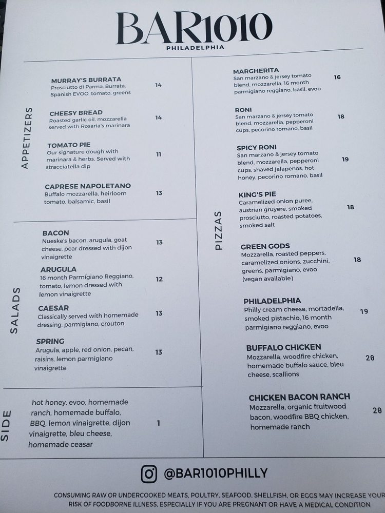 Located at 701 N 2nd St, Philadelphia, BAR 1010 offers a vibrant Italian pizza experience loaded with unique flavors. The menu shines with standout pizzas like the Spicy Roni featuring pepperoni and hot honey, and the truly inventive Tricky Tikka, which marries woodfire chicken with tikka sauce and cilantro lime chutney. Each pie is crafted with a crispy crust that is remarkably satisfying.